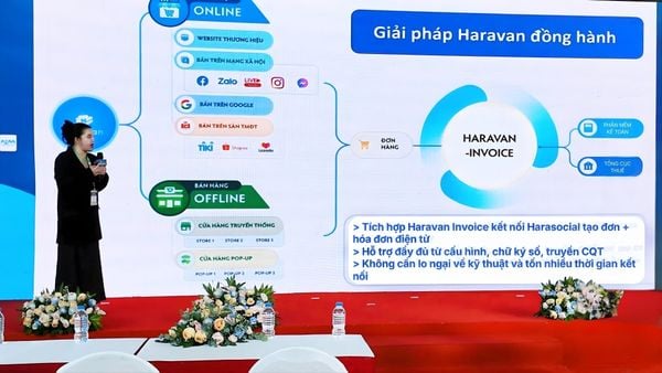 Trong đó, Haravan Invoice được giới thiệu như một giải pháp giúp doanh nghiệp kết nối trực tiếp dữ liệu đơn hàng với hệ thống phát hành hóa đơn điện tử, cho phép