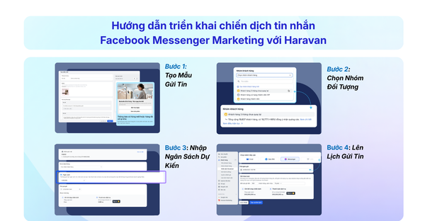 Để triển khai hiệu quả chiến dịch Facebook Marketing Messages trên nền tảng Haravan, bạn có thể thực hiện theo quy trình 4 bước đơn giản.